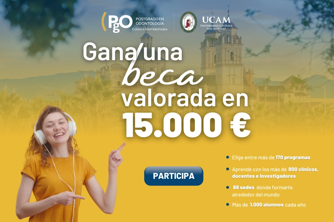 PgO UCAM continúa con el sorteo de una beca de 15.000 euros para odontólogos titulados, así como alumnos de 3º, 4º y 5º curso de Odontología, los cuales podrán participar hasta el próximo 1 de septiembre. Con este premio, el ganador podrá realizar uno de los programas de formación de PgO UCAM, diseñados para odontólogos interesados en ampliar sus conocimientos y mantenerse a la vanguardia de las novedades del sector.